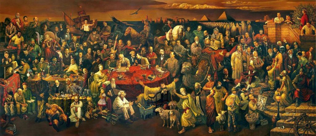 Illustrasjon: «Discussing the Divine Comedy with Dante» (2006) av Dai Dudu, Li Tiezi og Zhang An.