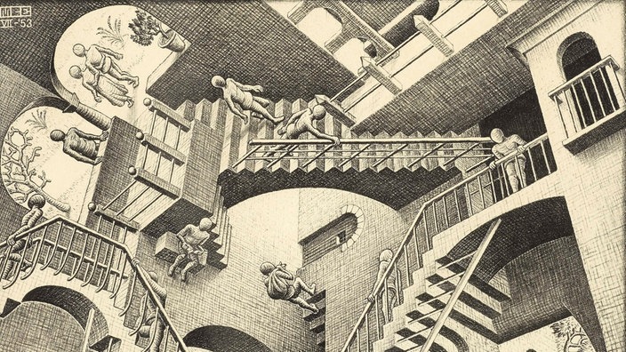 – Hva Gödel ønsket å komme fram til med ufullstendighetsteoremet, er at det finnes proposisjoner i et formelt system som er sanne, men som ikke kan bevises innenfor systemet ved hjelp av dets egne regler. Illustrasjon: «Relativity» (1953) av den nederlandske kunstneren M. C. Escher.
