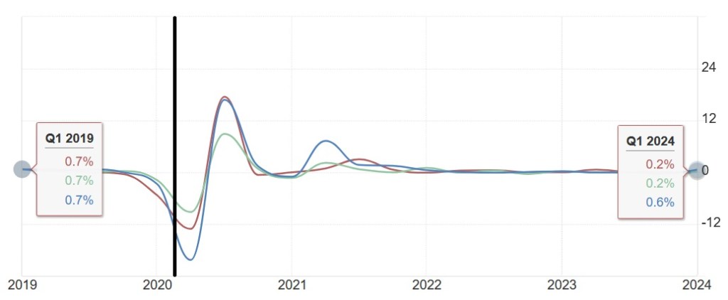 Om man kutter gjennom alt støyet, er dette hvordan det har gått med den britiske økonomien etter Brexit. Om himmelen har falt ned i Storbritannia kontra Tyskland og Frankrike, er dette i hvert fall ikke reflektert i empirien.